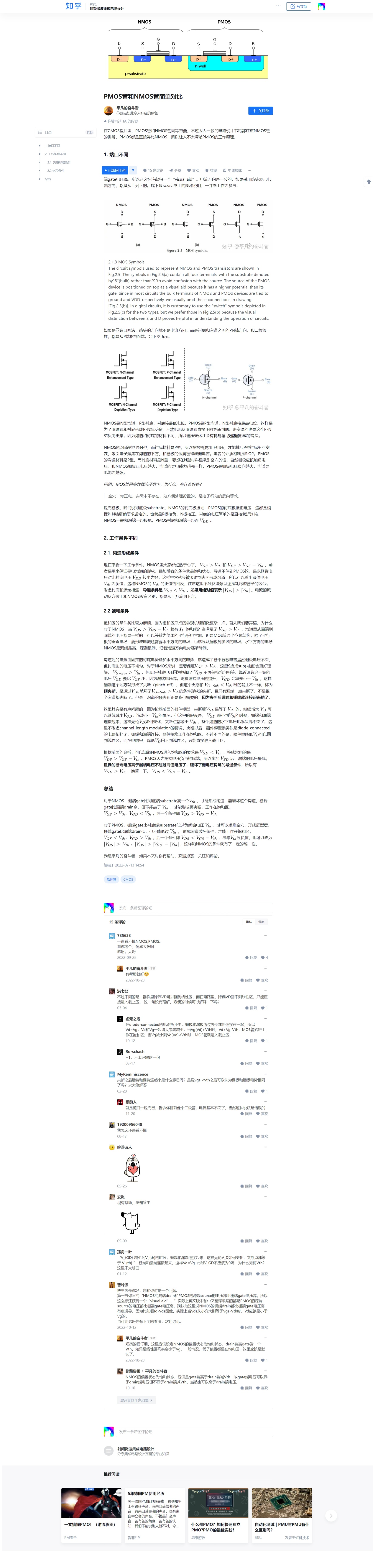 - 通过对比,详细的说明了 PMOS 的工作原理,即 PMOS 由于是负压,在低压导通,高压不导通;如果用绝对值表示则与 NMOS 没有区别。